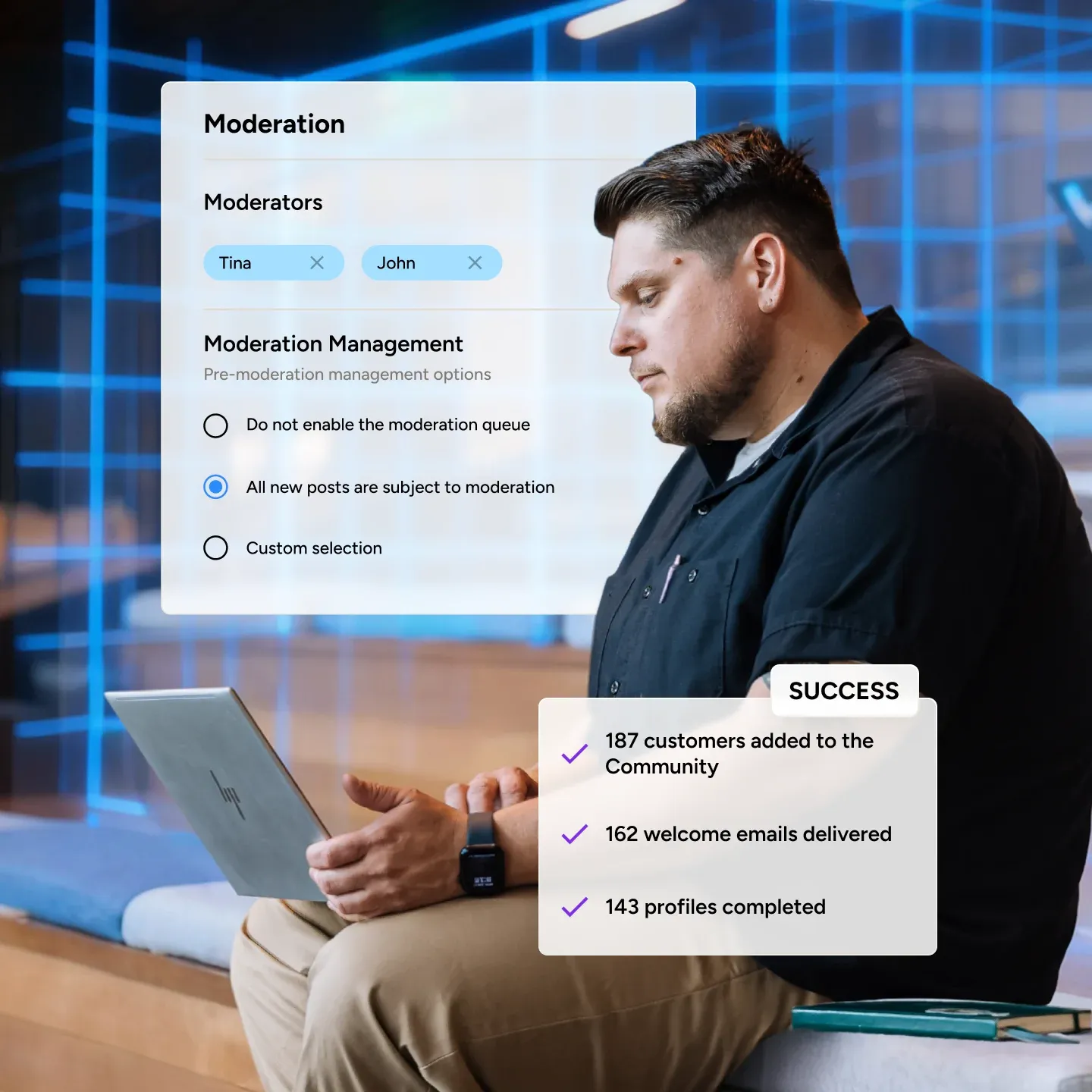 Moderate discussions, manage access, and see what’s driving engagement. Get clarity and confidence in every conversation, all from one place.